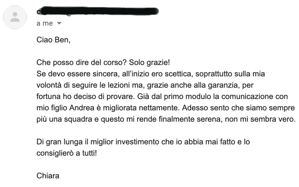 Questa è la testimonianza SPONTANEA di una mamma iscritta al corso: